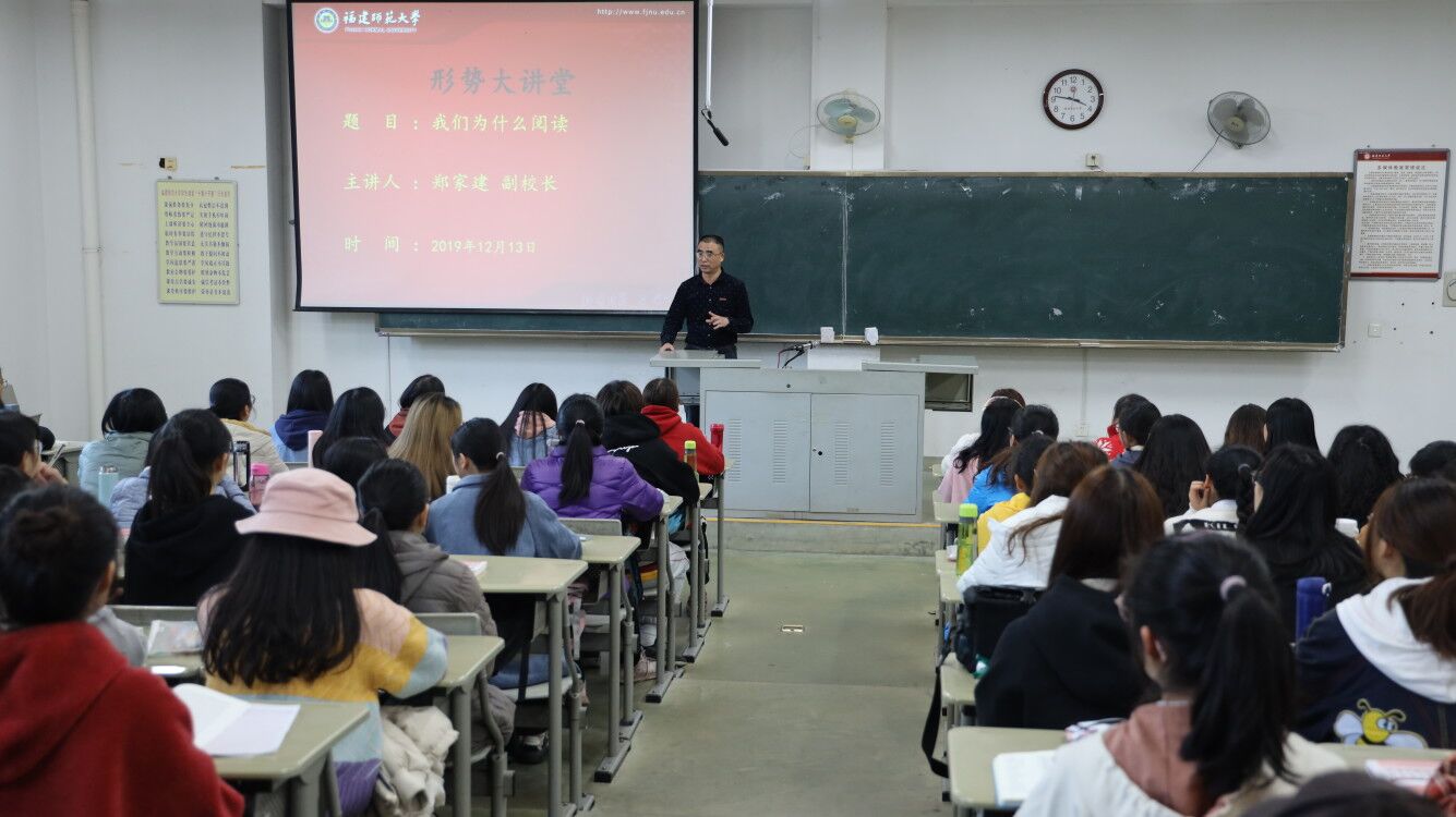 12月13日,副校长郑家建以《我们为什么要阅读》为题,为2018级教育学部教育学专业和学前教育专业的同学上思政课。他结合自己阅读体验,从阅读是“人认识世界的需要”“丰富人情感的需要”“自我认识的需要”“终极关怀的需要”四个维度深入浅出地阐释了阅读的意义。他强调,坚持终身阅读、终身学习是未来人民教师的必备人文素养和持续发展能力,希望同学们能通过阅读延伸自己,在有限的生命里面,构建自己对世界的理解和心智图景,真正安身立命,遇见更好的自己。