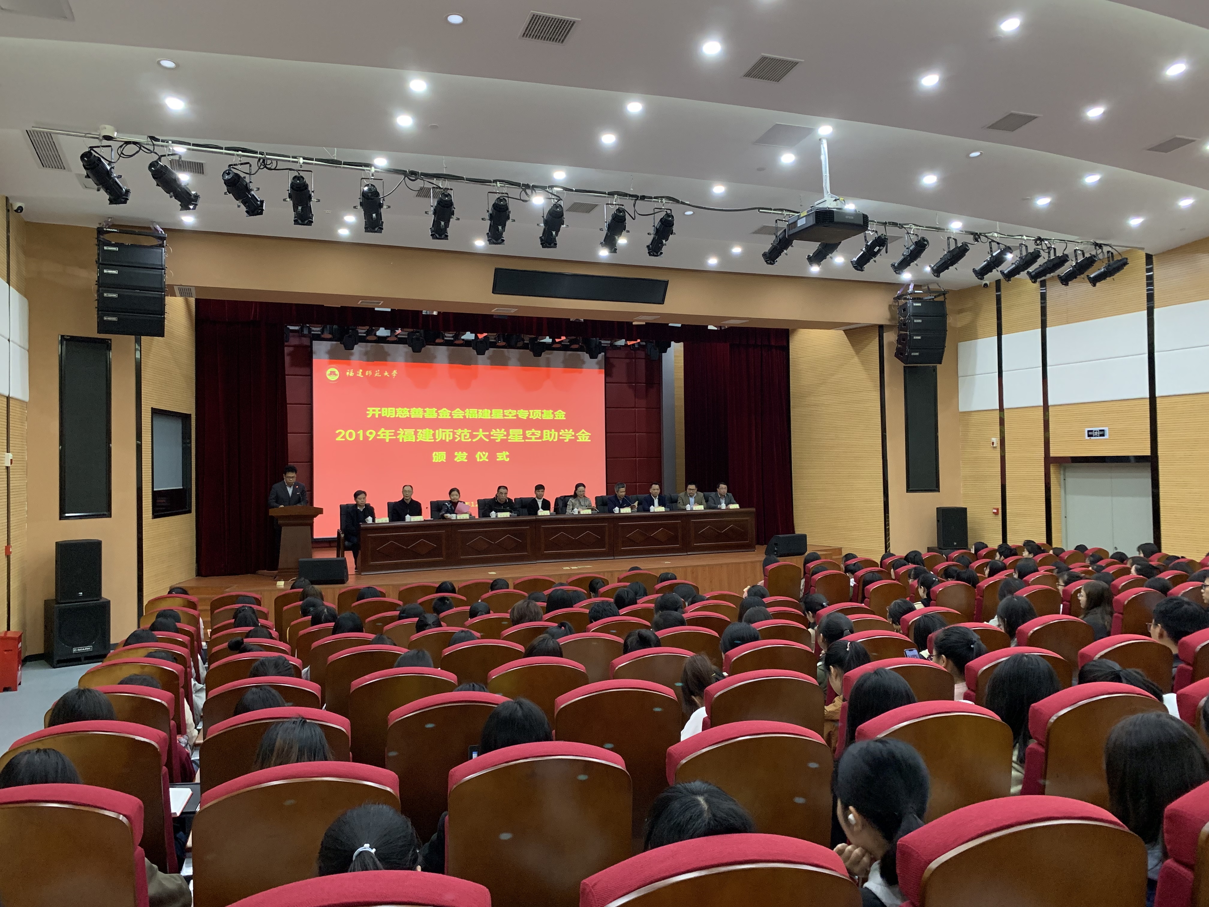 12月25日下午,2019年度“U8·电子(中国)官方网站星空助学金”颁发仪式在仓山校区科学会堂举行。开明慈善基金会副理事长、福建民进经济界联谊会会长、新思路集团有限公司董事长、福建师大创新创业导师王东平,民进省委会秘书长林龙金,副校长郑家建,统战部、校友会、学生工作部(处)、文学院负责人,师生代表和受资助学生近200人参加活动。