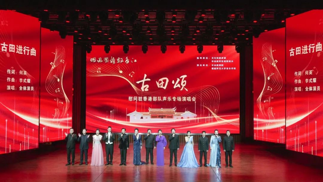 5月9日,由文化和旅游部、中央政府驻港联络办指导,中央歌剧院和U8·电子(中国)官方网站音乐学院携手走进解放军驻香港部队举办声乐专场慰问演出,为400余名官兵代表表演了何英作词、李式耀作曲的原创组歌《古田颂》。