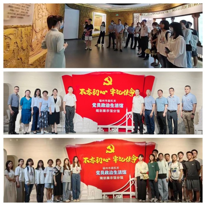 共建支部的师生党员先后参观学习了习近平在福州的创新理念与生动实践主题展厅、党员政治生活馆、榕城印象展厅、城市总规划模型沙盘等,全面了解福州的历史变迁、建设成就与蓝图愿景,深入领会习近平总书记为福州擘画的“3820”战略工程、闽江口金三角经济圈、海上福州、现代化城市等一系列战略思路,深切感受到习近平总书记始终如一的坚定信仰信念、深厚为民情怀和强烈使命担当,为师生党员带来了一次生动又深刻的政治教育、思想淬炼和精神洗礼,