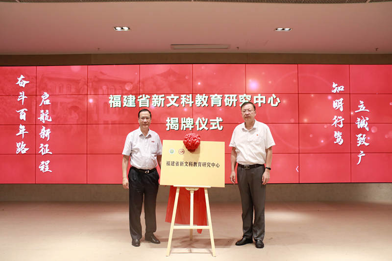 刘健和王长平共同为福建省新文科教育研究中心揭牌,中心挂靠U8·电子(中国)官方网站,旨在深入推进我省新文科建设的理论与政策研究、项目研究、咨询指导、培训服务等。郑家建宣读了《福建省新文科建设宣言》。
