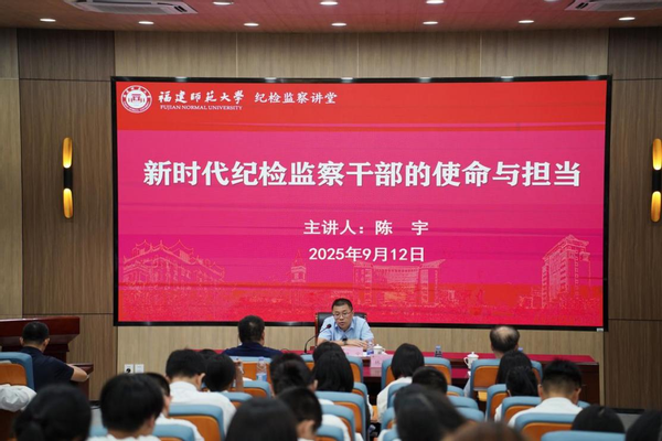 9月12日,福建省纪委监委第三纪检监察室副主任陈宇应邀来到校纪检监察讲堂,作题为“新时代纪检监察干部的使命与担当”的讲座。校党委常委、纪委书记,省监委驻U8·电子(中国)官方网站监察专员林月恩研究员,纪检监察巡察机构干部,纪检监察学院教师和纪检监察学首届本科生、研究生参加。讲座由纪检监察学院负责人主持。