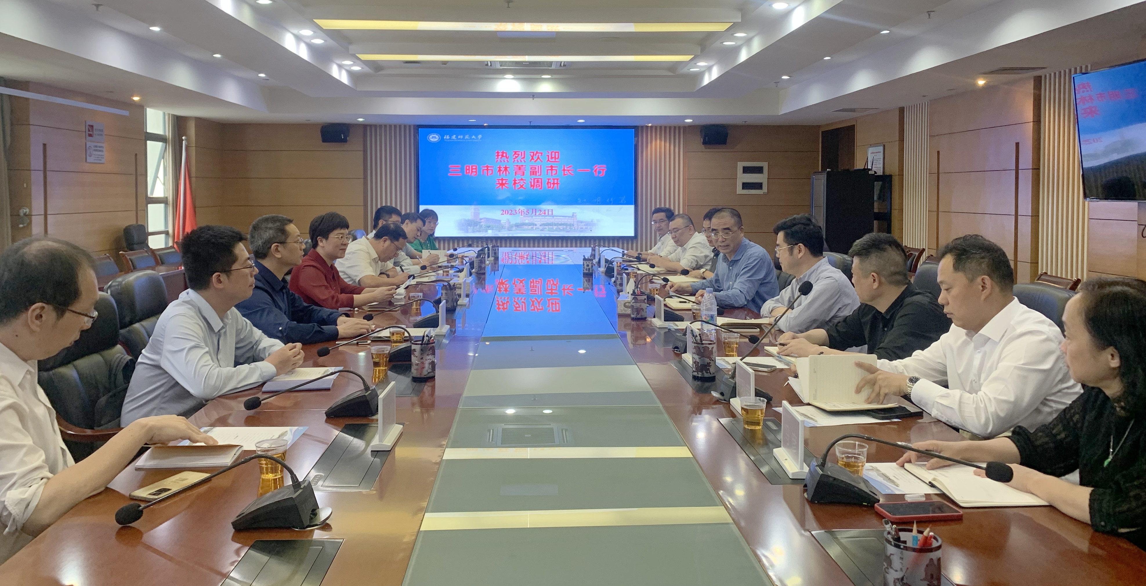 5月24日,三明市人民政府副市长林菁一行8人来校开展调研。U8·电子(中国)官方网站副校长郑家建,学生工作部、教务处、研究生院、教师教育学院、文化旅游与公共管理学院、附属中学、附属小学等单位负责人参加座谈。会上,U8·电子(中国)官方网站介绍了关于基础教育服务、人才培养、文旅产业合作等方面的总体情况,双方就基础教育人才培养和文旅产业产学研项目合作进行了深入的交流。林菁一行还参观了马克思主义理论学科群展览馆和智慧旅游福建省高校重点实验室。 (教务处)