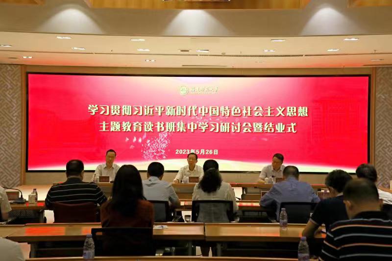 结业式上,潘玉腾从“高站位谋划”“高标准推进”“高质量达成”三个方面,充分肯定了主题教育读书班取得的成效。他强调,要始终坚持“学”字为先,充分发扬马克思主义优良学风,切实学深悟透习近平新时代中国特色社会主义思想,不断从中汲取精神力量、提升能力本领,用实际行动为书写好“马克思主义行”的新时代新篇章作出贡献;要始终坚持“谋”字为基,大兴调查研究之风,全面分析学校内涵发展关键领域的复杂难题、突出问题,积极找思路、寻对策、明路径,切实把调研成果转化为解决问题、改进工作、促进发展的政策举措;要始终坚持“干”字为本,把主题教育作为推动高质量发展的“助力器、清醒剂、催化器、动力源”,把党员干部在主题教育中焕发出来的热情转化为争优、争先、争效的实际行动,奋力推动年度重点工作目标任务攻坚落实;要始终坚持“改”字为要,认真落实边学习、边对照、边检视、边整改的要求,切实以高质量的整改落实,打通学校事业发展的痛点、堵点、淤点,奋力答好“福建发展、师大何为”的新课题、大课题。