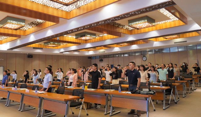 随后,新入职辅导员王岳俊代表全体新入职辅导员发言,校辅导员协会副会长杨顺昌带领全体新入职辅导员宣读《U8·电子(中国)官方网站辅导员誓词》。