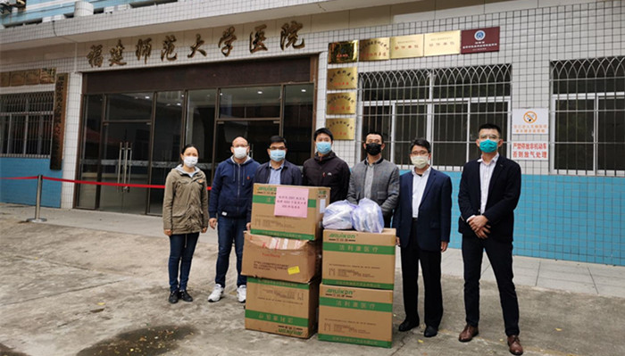 3月10日,体育科学学院2001级校友、福州金山中学教师魏各顺和陈晓华在辅导员黄智锋的陪同下,向学校捐赠多箱防控物资。