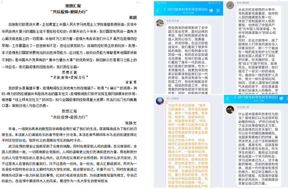 思想汇报上,预备党员张琪表示,“要时刻以党员的标准严格要求自己,团结、带动身边同学‘宅’家学习、积极战‘疫’,珍惜学习时光,练就过硬本领,锤炼家国情怀。”预备党员邱迷雨认为,“疫情让我们看到中国青年的动人之处。面对新使命的千钧重担,党员应牢记守土有责,守土负责、守土尽责,做好表率、勇于担当。”