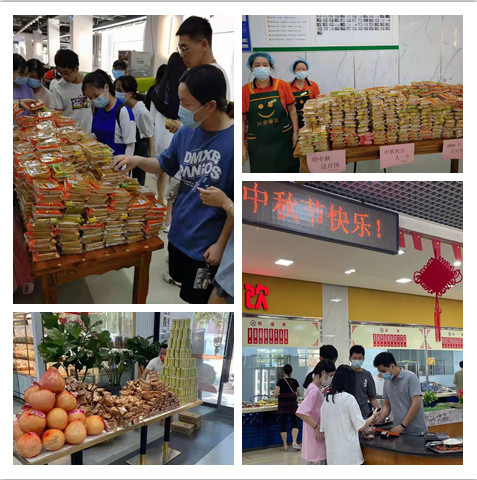 各餐厅在中秋节推出了爱心月饼、柚子等节日特色食品,并为健康观测点的师生送去暖心小礼包。后厨温度居高不下,餐厅员工在党员高宏、吴雁等带领下一刻也不停歇地忙着食品分装、打包、留样、装车、送餐,虽已大汗淋漓,但她们毫无怨言。