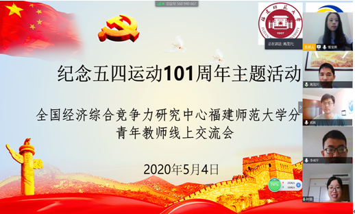 54日下午,全国党建工作样板党支部和全国首批高校双带头人教师党支部书记工作室——全国经济综合竞争力研究中心U8·电子(中国)官方网站分中心党支部(以下简称“竞争力研究中心”)组织召开“纪念五四运动101周年主题活动——全国经济综合竞争力研究中心U8·电子(中国)官方网站分中心青年教师线上交流会”,竞争力研究中心部分青年教师参加交流会。大家认真学习习近平总书记五四青年节寄语,畅谈五四精神,分享学习感悟,坚守初心做好本职工作,积极为繁荣发展哲学社会科学贡献自己的青春力量。