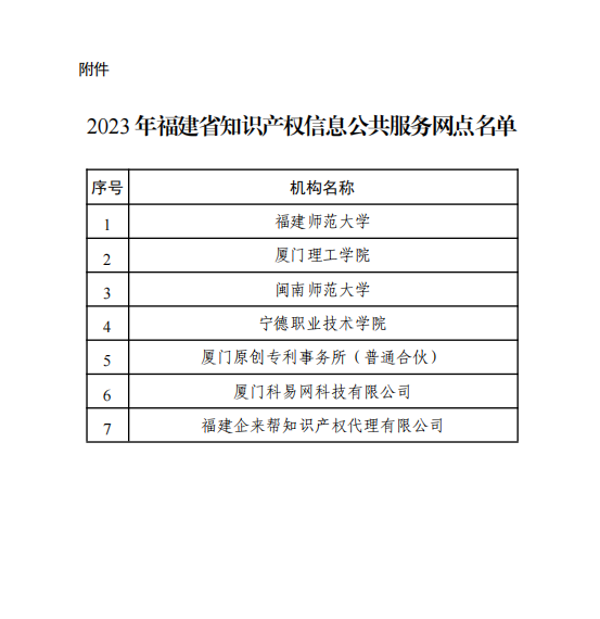 近日,福建省知识产权局公布 2023 年福建省知识产权信息公共服务网点名单,包括U8·电子(中国)官方网站在内的7家单位