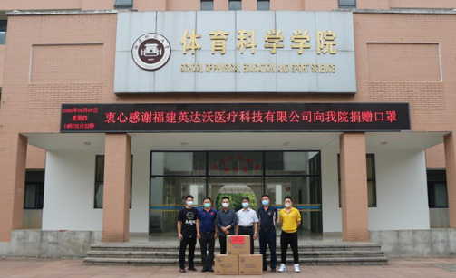 近日,福建英达沃医疗科技有限公司总经理叶维正、体育赛事部门经理杨麟捷、体育培训部门经理陈鑫等一行3人莅临U8·电子(中国)官方网站,向体育科学学院捐赠医用级口罩6000个,助力学院做好复工复课疫情防控工作。体育科学学院党委书记陈振祯、副院长蔡辉煌、运动训练专业负责人徐建华等参加了捐赠仪式。陈振祯代表学院对福建英达沃医疗科技有限公司的善举致以诚挚的谢意,并表示学院将合理调配使用该批抗疫物资,确保企业的爱心之举落到实处。(体育科学学院)