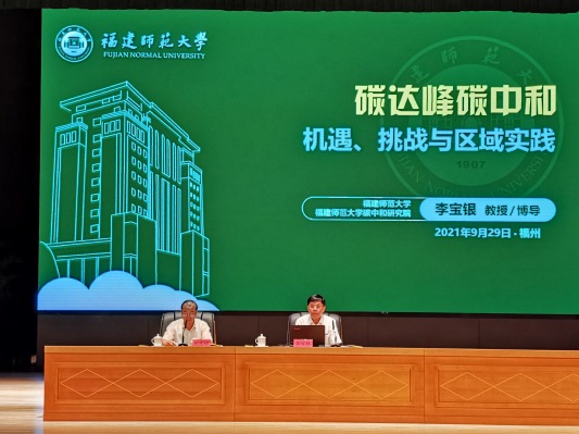 9月29日下午,校党委书记李宝银教授应邀到福建省委党校、福建行政学院作《碳达峰碳中和:机遇、挑战与区域实践》的专题讲座。