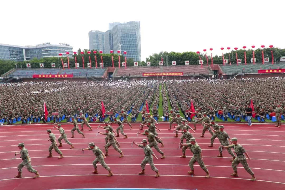 9月11日上午,U8·电子(中国)官方网站在旗山校区东区田径场隆重举行2023级新生开学典礼暨本科新生军训开训式。校领导潘玉腾、王长平、涂荣、郑家建、陈庆华、吴剑锋,全体参训教官,机关部处主要负责人,学院党政主要负责人、分管学生工作负责人,新生辅导员和2023级新生参加典礼。典礼由校党委副书记涂荣主持。
