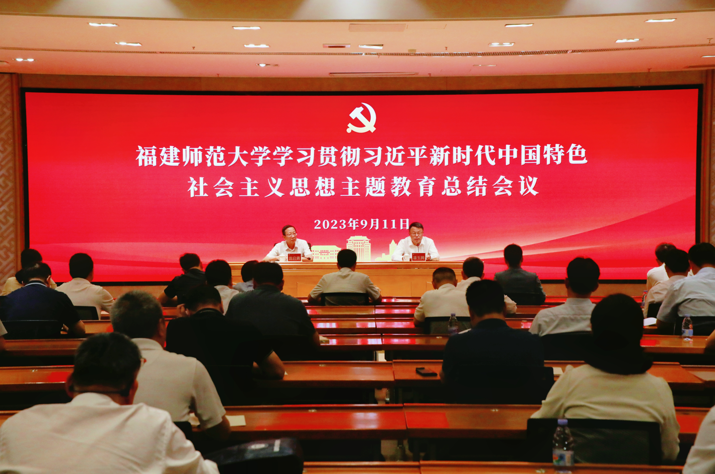 会议于911日在旗山校区宏达厅召开。省委第十四巡回指导组组长翁启勇及指导组成员危雨童到会指导,校党委书记、校党委主题教育领导小组组长潘玉腾主持会议并作总结讲话。校领导,校党委主题教育领导小组办公室各工作组组长、副组长,机关部处及二级党组织主要负责同志参加会议。