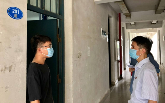 院领导与辅导员深入宿舍与学生交流,关心毕业生返校生活和未来工作意向情况,鼓励学生克服疫情带来的影响,珍惜在校的美好时光。