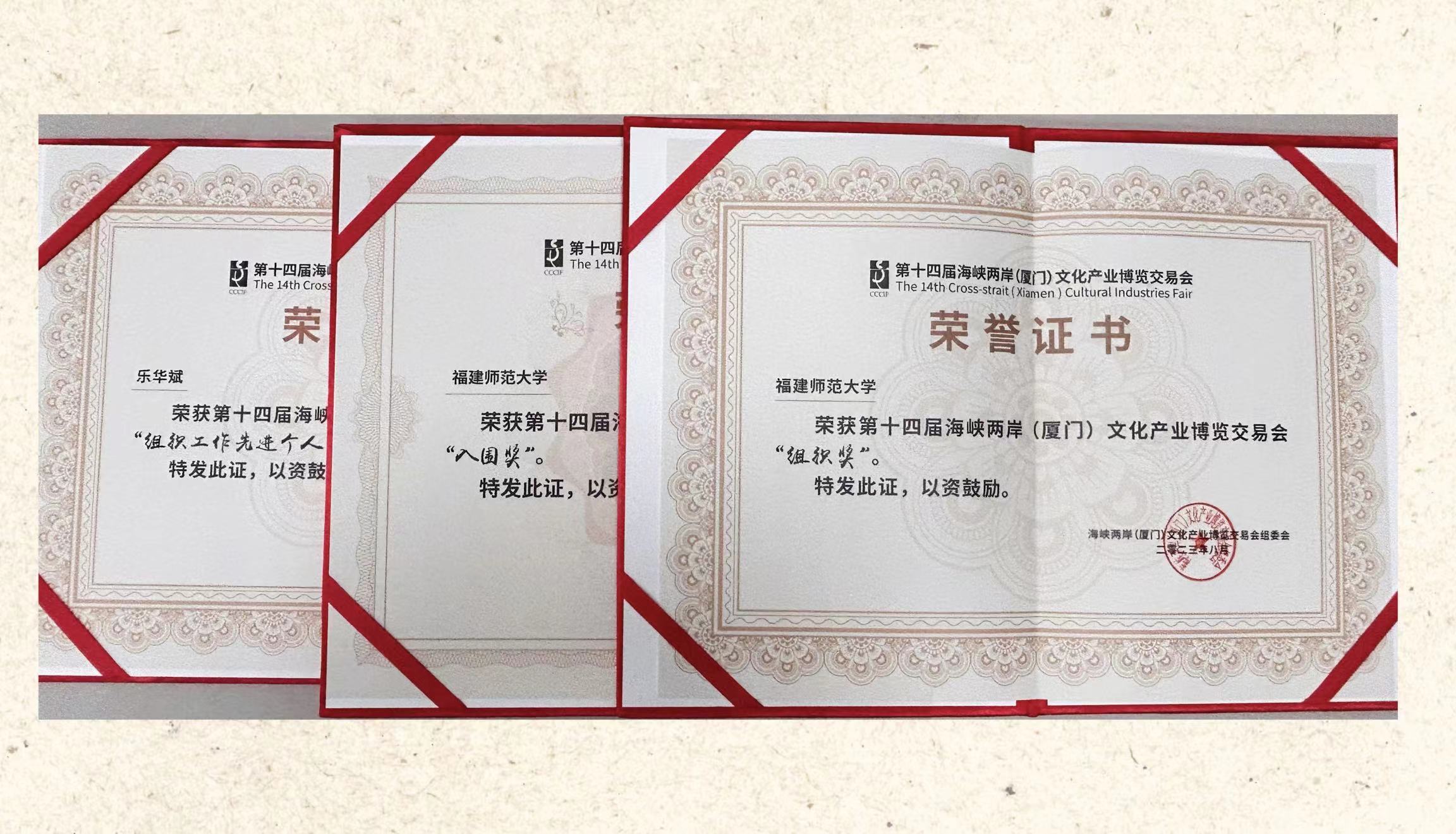 近日,海峡两岸(厦门)文化产业博览交易会组委会表彰结果揭晓。U8·电子(中国)官方网站荣获第十四届海峡两岸(厦门)文化产业博览交易会“组织奖”和“入围奖”,乐华斌老师荣获“组织工作先进个人奖”。