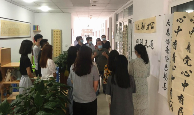 学院党委书记钟伟兰结合书法作品内容,为毕业生党员开设了题为《校准航向扬帆新程》的廉政专题党课,勉励毕业生党员要时刻牢记党员的身份,以“心中有党,心中有民,心中有责,心中有戒”不断警醒、勉励自己,不断校准价值观和人生航向,在新岗位和人生新旅程中践行初心使命,让自己的青春更加出彩。