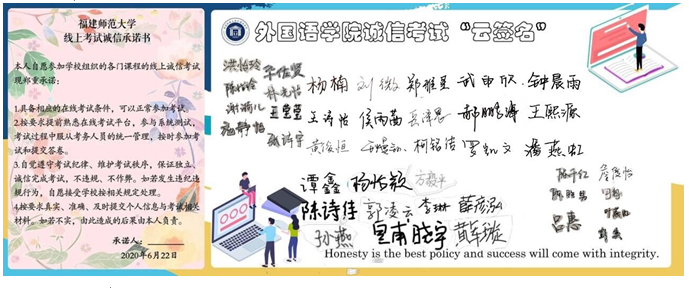 近日,外国语学院组织开展线上诚信考试“云签名”活动,营造良好考试氛围,培育诚信考试意识。