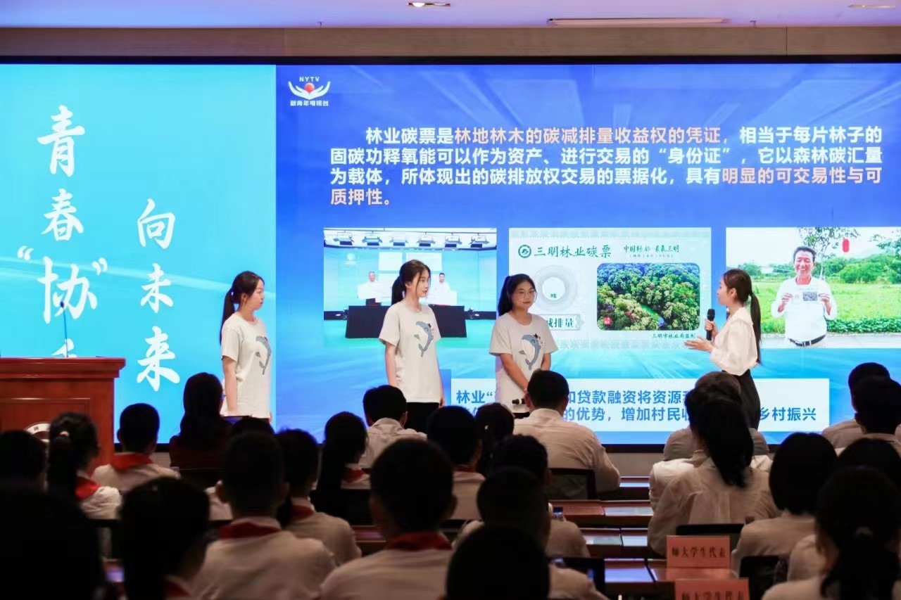 活动现场,U8·电子(中国)官方网站学生代表通过主题情景剧的形式,展示了2022年省最佳模拟政协提案作品《关于推进林业“碳票”制度改革的建议》。