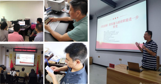 近日,仓山区法学会、仓山区司法局在金山司法所举办《民法典》系列宣讲活动启动仪式。U8·电子(中国)官方网站法学院副教授丁兆增受邀围绕“《民法典》的实施与政府职能进一步转变”为主题开展专场授课,并通过“云课堂”平台进行直播。仓山区各司法所负责人,干部群众代表50余人在现场参加了仪式和听课,全区干部群众3000余人在线观看学习。