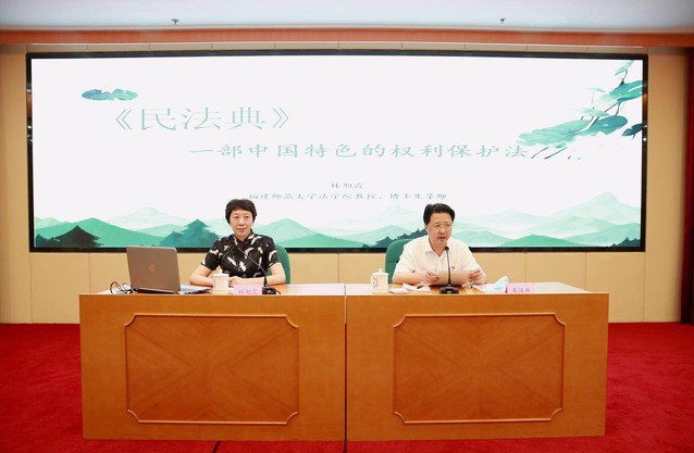 作为民商法知名专家、第三届“福建省十大法治人物”,林旭霞教授先后应邀在福建省纪委、福建省人大、福建省军区、福建省民宗厅、福建农业科学院、福建省网信办、福建省体育局、福州市电视台、福州市人大常委会、福州晋安区委、泉州永春县委等多个机关单位开展宣讲,主题包括《〈民法典〉:一部中国特色的权利保护法》《〈民法典〉物权编的中国特色与制度创新》《市民生活的百科全书——〈民法典〉解读》,从立法、物权、民生等多个角度,深入浅出地阐释了《民法典》的诞生历史、创新意义、亮点特色等。