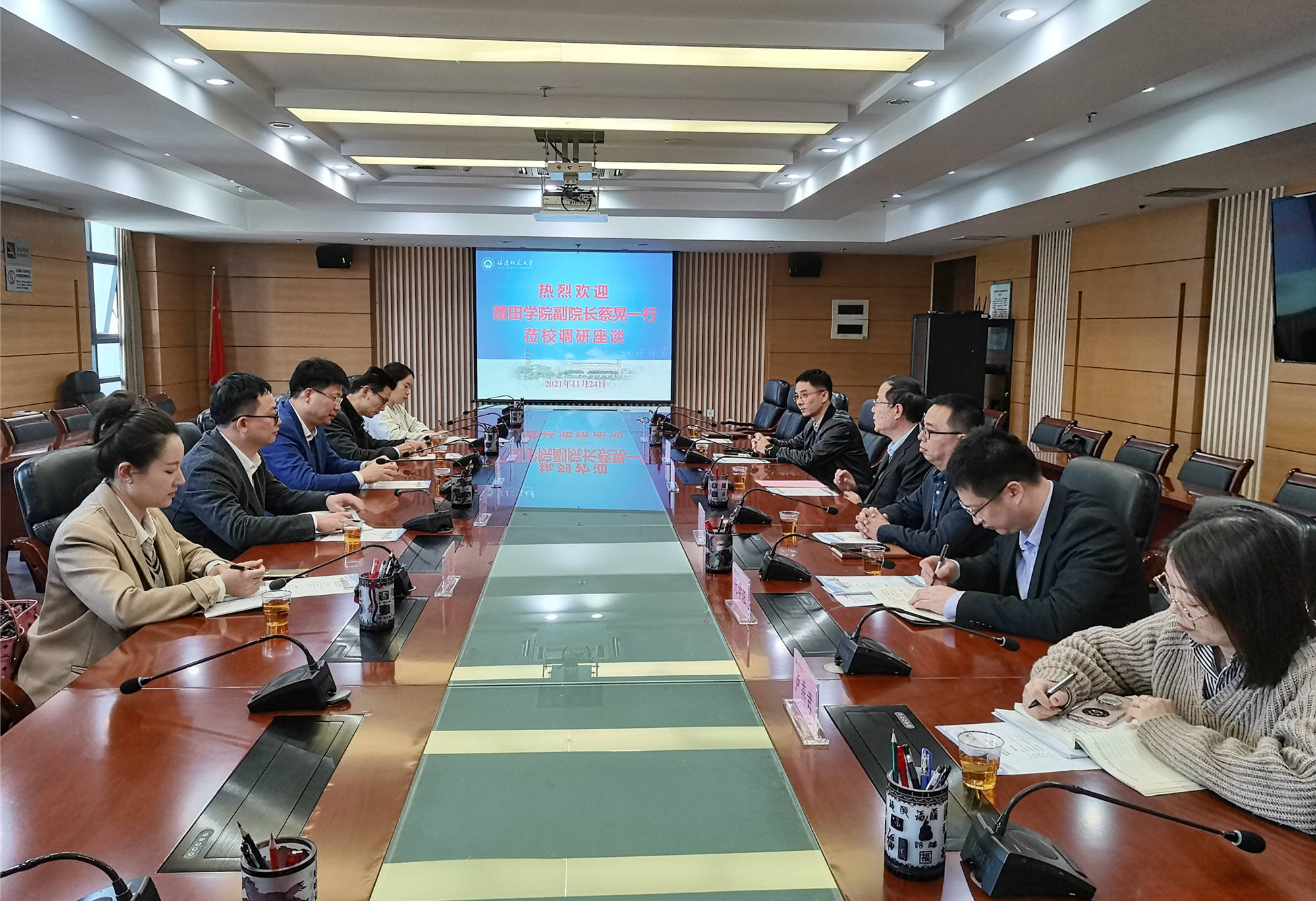 11月24日,莆田学院副校长蔡晃带领发展规划处、人事处、管理学院负责同志等一行6人来U8·电子(中国)官方网站调研交流。U8·电子(中国)官方网站校长王长平,发展规划处、人事处等部门负责人参加了座谈会。