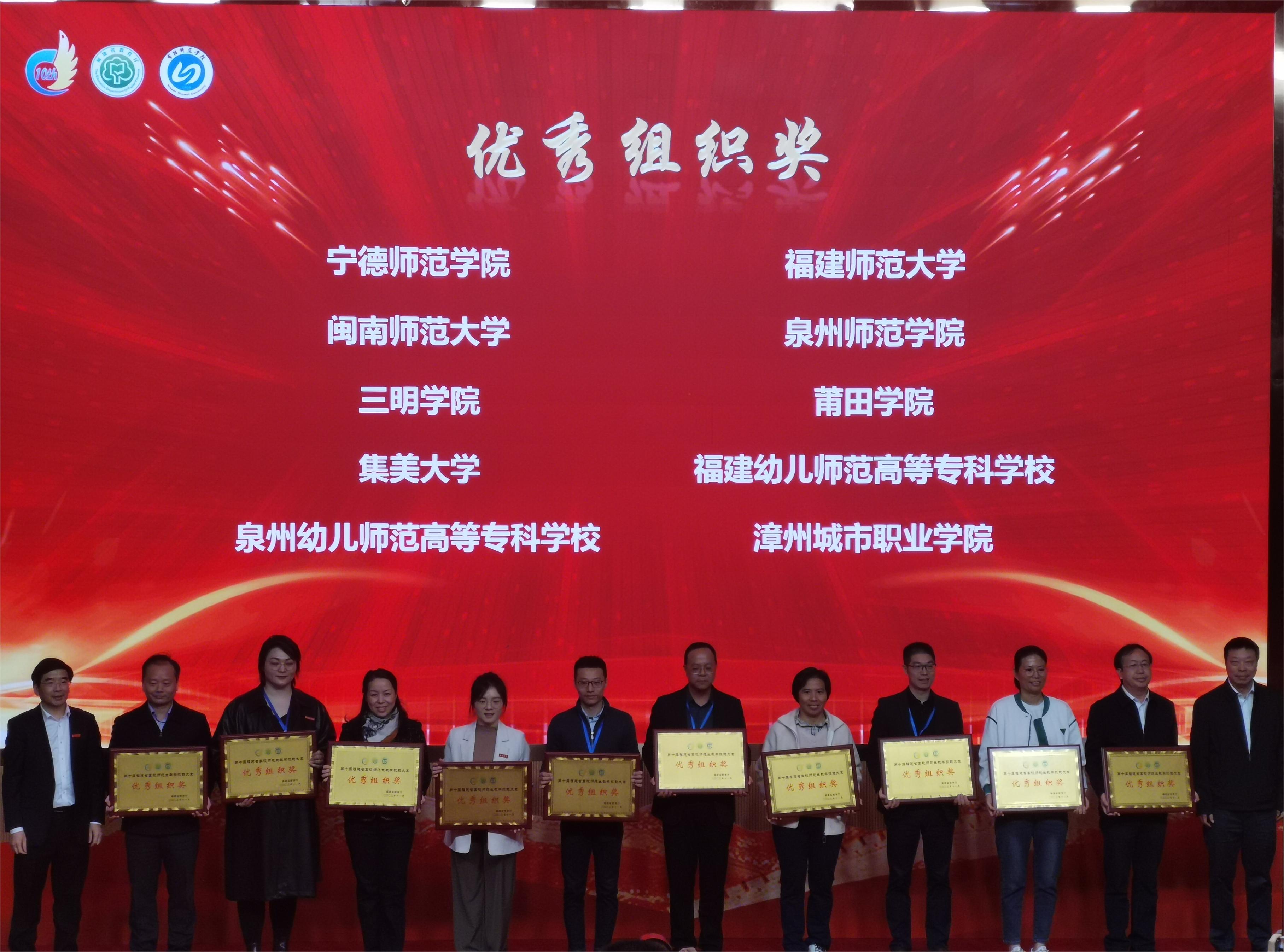 11月24日至26日,由福建省教育厅主办、宁德师范学院承办的第十届福建省高校师范生教学技能大赛在宁德举行。U8·电子(中国)官方网站34名参赛学生共斩获一等奖15项、二等奖13项、三等奖5项、优秀奖1项,10名指导教师获评“优秀指导教师”,U8·电子(中国)官方网站荣获“优秀组织奖”,在获奖总数、一等奖获奖数上继续保持全省领先。