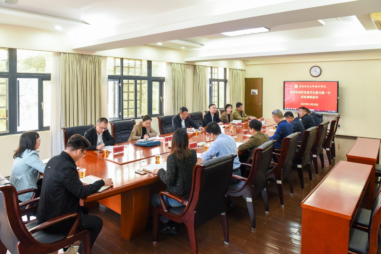11月30日,在U8·电子(中国)官方网站协和学院成立20周年之际,校党委书记潘玉腾带领党政办公室、组织部、人事处、财务处、资产管理处负责同志深入协和学院调研。协和学院党政领导班子成员及有关职能部门负责同志参加调研。