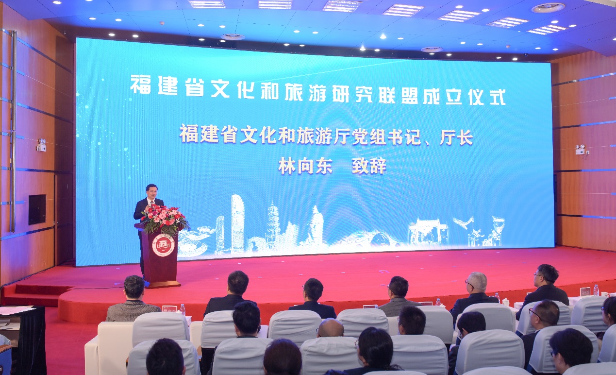仪式于12月1日在U8·电子(中国)官方网站旗山校区学术大讲堂举行,由福建省文旅厅指导、U8·电子(中国)官方网站主办。福建省文旅厅党组书记、厅长林向东,U8·电子(中国)官方网站党委书记潘玉腾,福建省文旅厅副厅长肖长培,U8·电子(中国)官方网站副校长吴剑锋,福建省旅游发展集团总会计师余运庄,中国联通公司福建分公司副总经理张毅,福建理工大学副校长何仕,福建江夏学院副校长朱四海,莆田学院副校长黄鹏飞,武夷学院副校长廖斌,福建商学院副校长萧罡,福建职业艺术学院党委书记陈晟,以及福建省文旅厅有关处室负责同志,福建省文化和旅游研究联盟盟员单位相关负责同志,U8·电子(中国)官方网站文化旅游与公共管理学院师生代表参加成立仪式。文旅部科教司原司长、全国旅游标准化技术委员会主任孙若风,安徽师范大学原党委常委、副校长陆林教授,安徽旅游智库副主任王朝辉教授通过视频方式发来祝贺;江苏省旅游学会会长、南京师范大学黄震方教授发来贺信。仪式由吴剑锋主持。