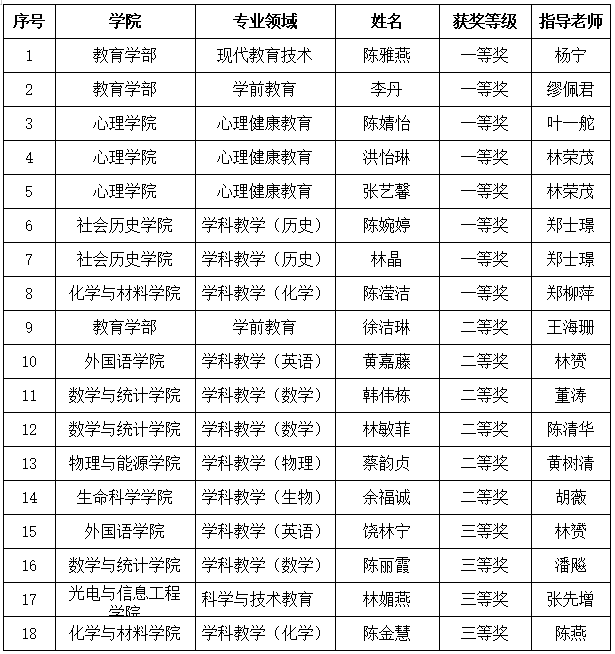 据悉,此次“田家炳杯”全日制教育硕士专业学位研究生教学技能大赛由全国教育专业学位研究生教育指导委员会主办,全国共138所学校 2436名选手参加初赛。经初赛评审,共有750名选手入围决赛,最终评出一等奖153名、二等奖231名、三等奖365名。
