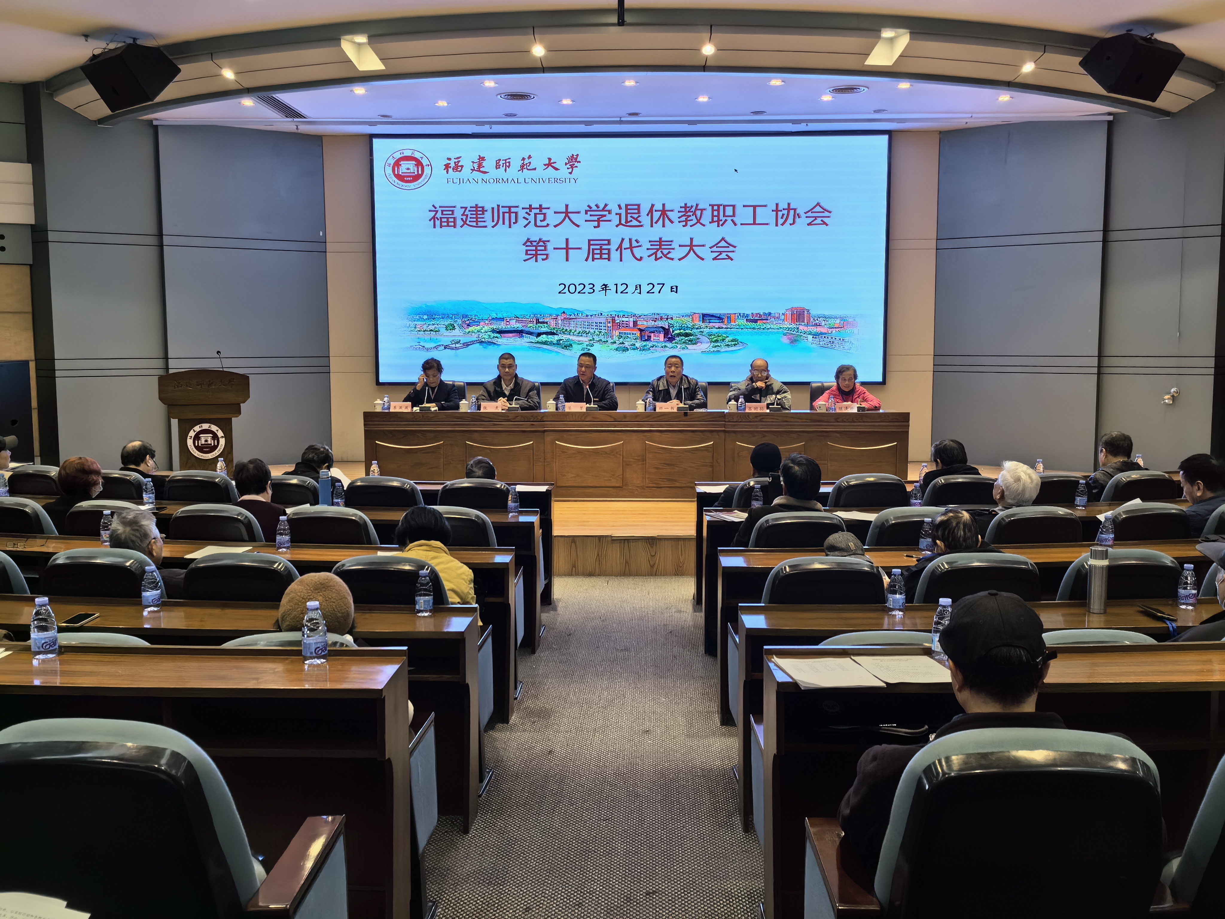 会议于12月27日在仓山校区召开。校党委书记潘玉腾、副书记涂荣,原副校长、协会会长郑一书,退休教职工代表、各单位离退休工作领导小组组长以及特邀代表、列席代表等近百余人参会。