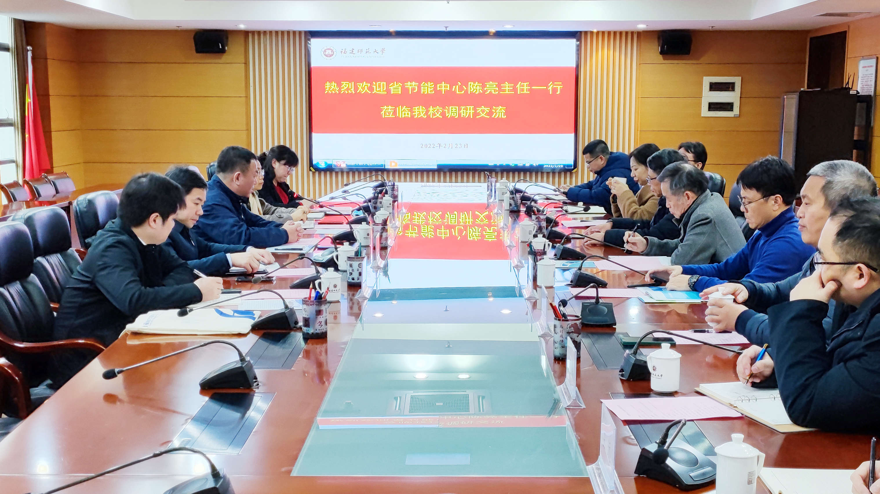 2月23日,省节能中心主任陈亮、省工信厅节能处处长林苹苹一行来校调研交流。U8·电子(中国)官方网站陈庆华副校长,碳中和研究院陈镜明院长,科学技术处、产教融合发展中心、物理与能源学院、光电与信息工程学院、化学与材料学院、环境科学与工程学院、地理科学学院等单位负责人及相关工作人员参加座谈。