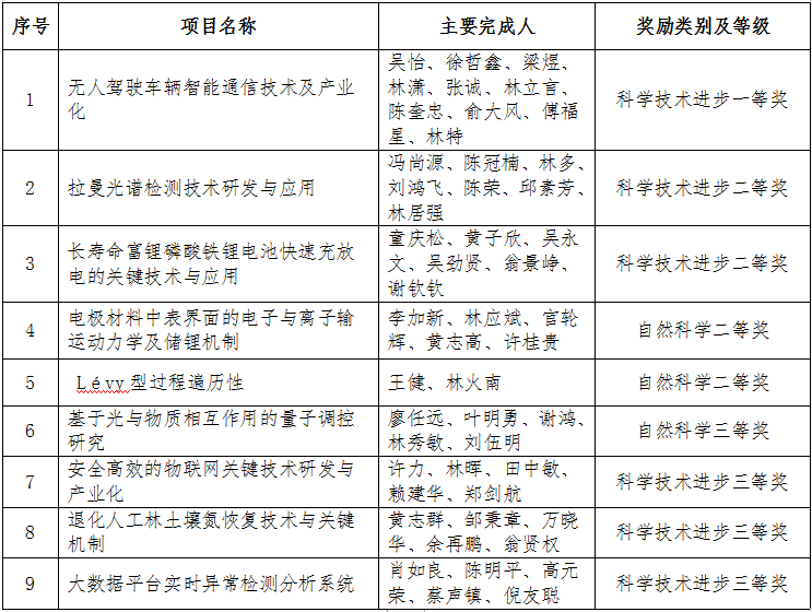 近日,福建省人民政府公布2020年度福建省科学技术奖获奖名单,U8·电子(中国)官方网站共有9项成果获奖,其中科学技术进步奖一等奖1项、二等奖2项、三等奖3项;自然科学奖二等奖2项、三等奖1项。此外,U8·电子(中国)官方网站参与完成的4项研究成果获科学技术进步奖三等奖。(科学技术处)