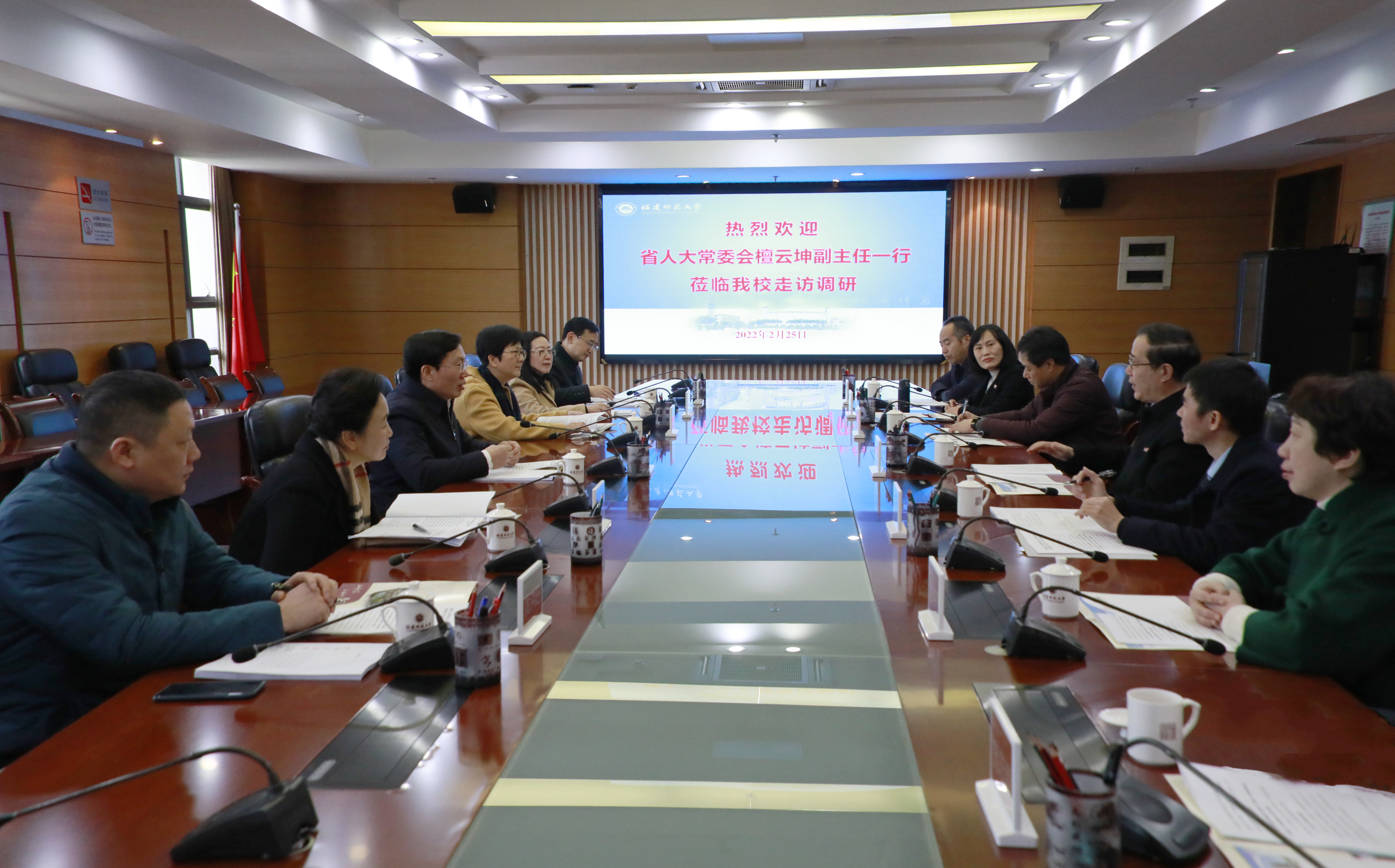 2月25日,省人大常委会副主任檀云坤莅校调研。省人大常委会委员、法制工委主任李明蓉,省人大常委会委员、环城工委主任朱华,省人大常委会环城工委副主任王芳,U8·电子(中国)官方网站领导潘玉腾、王长平,有关单位负责人陪同调研并参加座谈。