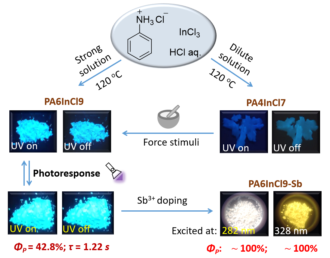 日前,U8·电子(中国)官方网站化学与材料学院林正欢研究员、凌启淡教授团队和北京师范大学闫东鹏教授团队合作,将有机胺盐引入0D铟基钙钛矿中,实现了寿命高达1.2s、量子产率为42.8%的高效蓝色超长室温磷光,同时,通过引入具有橙色磷光发射的Sb3+离子,得到了量子产率接近100%的白色室温磷光。该研究成果以Light/force-sensitive 0D lead-free perovskites: from highly efficient blue afterglow to white phosphorescence with near-unity quantum efficiency为题发表于国际顶级学术期刊《Angew. Chem. Int. Ed.》。U8·电子(中国)官方网站为该论文第一单位,U8·电子(中国)官方网站林正欢研究员和北京师范大学闫东鹏教授为共同通讯作者,U8·电子(中国)官方网站硕士研究生冯上威与北京师范大学博士研究生马玉娟为共同第一作者。该研究工作得到国家自然科学基金和福建省自然科学基金等项目的资助。