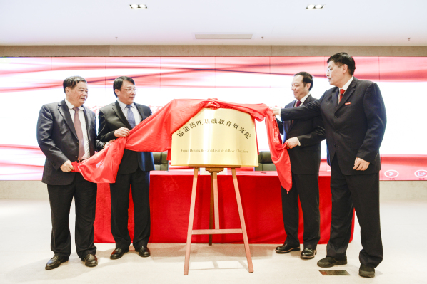 仪式上,林和平、曹德旺、王长平分别代表三方签署了《合作组建福建德旺基础教育研究院框架协议书》,朱之文、杨贤金、曹德旺、李宝银共同为研究院揭牌。