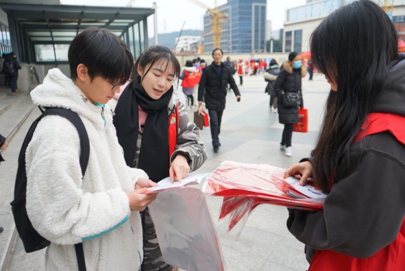 125日,U8·电子(中国)官方网站学生工作部(处)党支部联合省学生资助管理中心党支部在福州火车站南广场共同开展“国家资助温暖回家路”党日活动暨资助政策宣传志愿者活动。学生工作部(处)党支部书记、部(处)长颜隆忠带领支部党员和文学院青年志愿者到现场为往来旅客介绍国家资助政策,分发新春对联、新年台历以及助学贷款等相关宣传材料,为2024年春运增添一份温馨暖意。