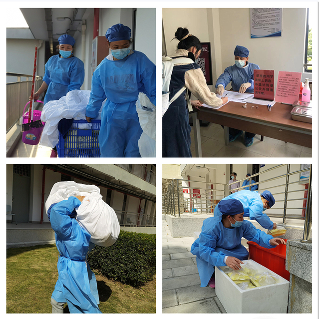 上下楼梯、搬扛重物、盥洗消毒.....一遍又一遍的工作看似简单,却丝毫马虎不得。党员抗疫先锋队的队员们全身心投入“战场”,以对学生安全高度负责的态度,默默地、一丝不苟地做好手头上每一项工作。