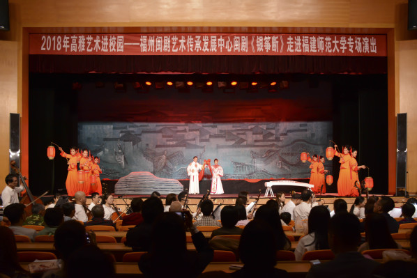 10月31日,2018年高雅艺术进校园——福州闽剧艺术传承发展中心闽剧《银筝断》专场演出在旗山校区青春剧场隆重上演,共吸引1000余名学生前来观看。