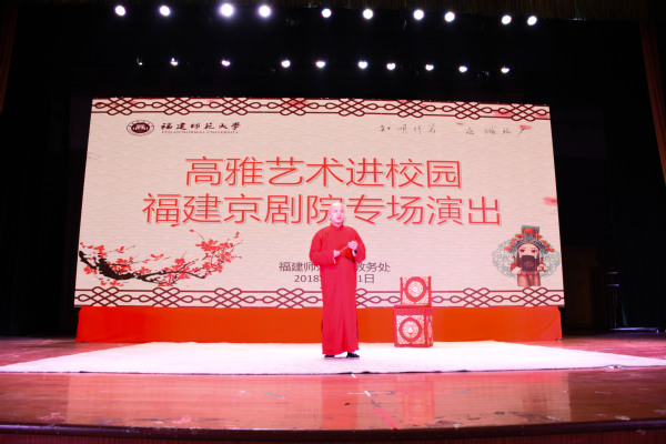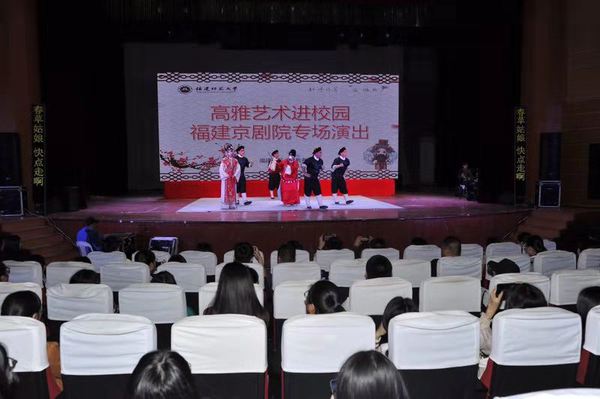 据悉,福建省京剧院已有70年建院历史,2005年被文化部评为“省级重点京剧院团”。本次个性化培养周邀请福建京剧院高雅艺术进校园,为全校师生带来一场体验国粹艺术的盛宴,搭建了一个亲近艺术、聆听大师、感受艺术魅力的平台。