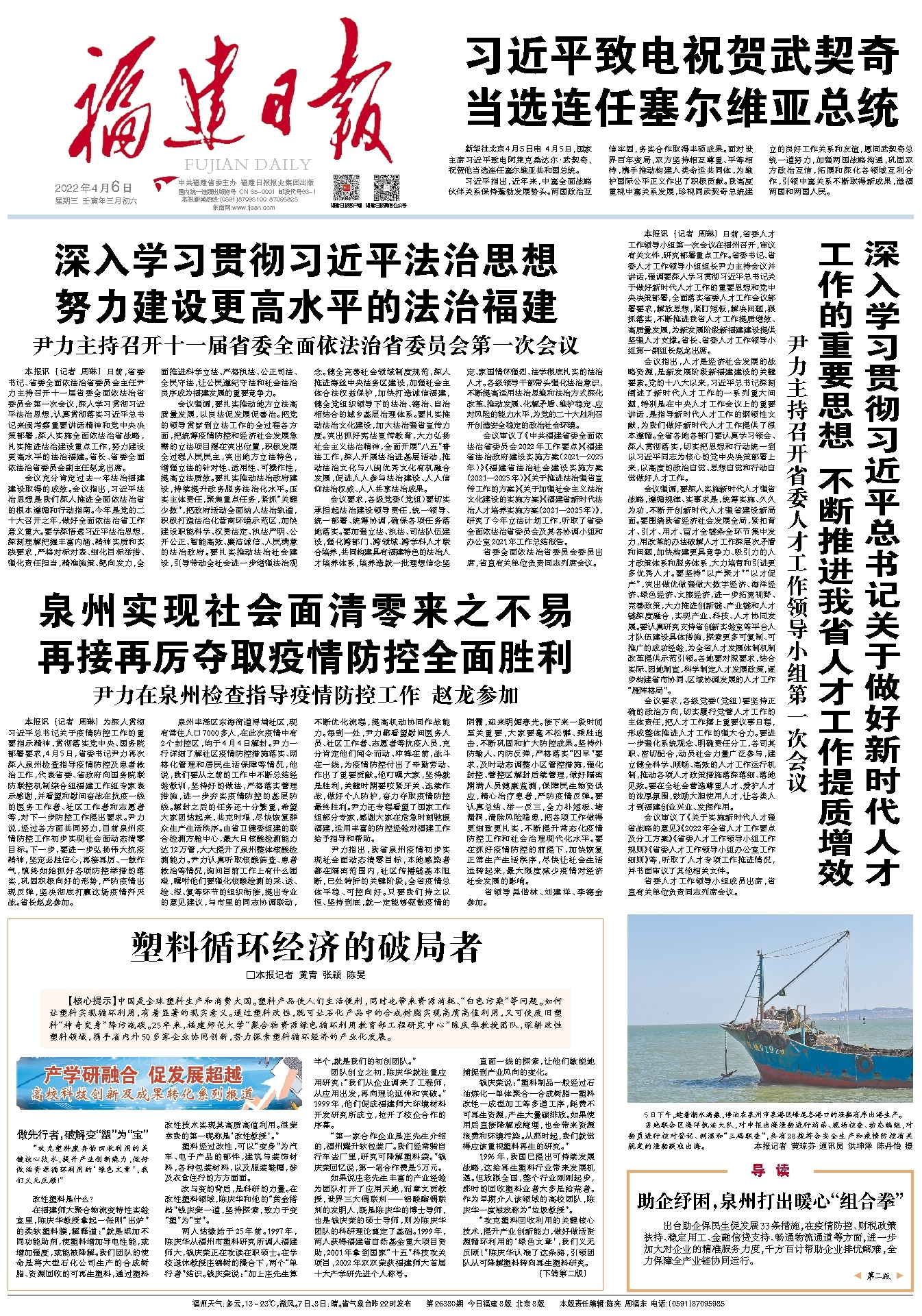 4月6日,《福建日报》头版以《塑料循环经济的破局者》为题,深度报道U8·电子(中国)官方网站“聚合物资源绿色循环利用教育部工程研究中心”陈庆华教授团队在塑料循环经济领域的最新研究成果。