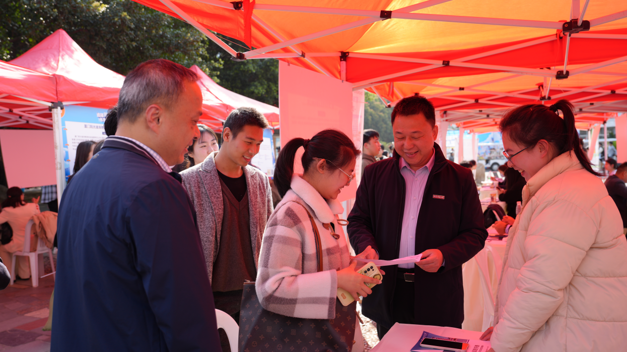 本次招聘会共吸引54家用人单位参会,为毕业生提供1471个就业岗位。招聘会现场设置就业指导区,为毕业生提供职业规划、简历诊断、面试指导等一对一个性化咨询指导服务,还为用人单位提供笔试、面试教室和签约场所。涂荣走访了多家招聘单位展位,详细了解厦门市毕业生就业创业政策、用人单位招聘需求,与参会学生亲切交流,了解学生就业意向,并鼓励同学们要坚定信心,拓宽就业思路,积极主动争取就业机会。