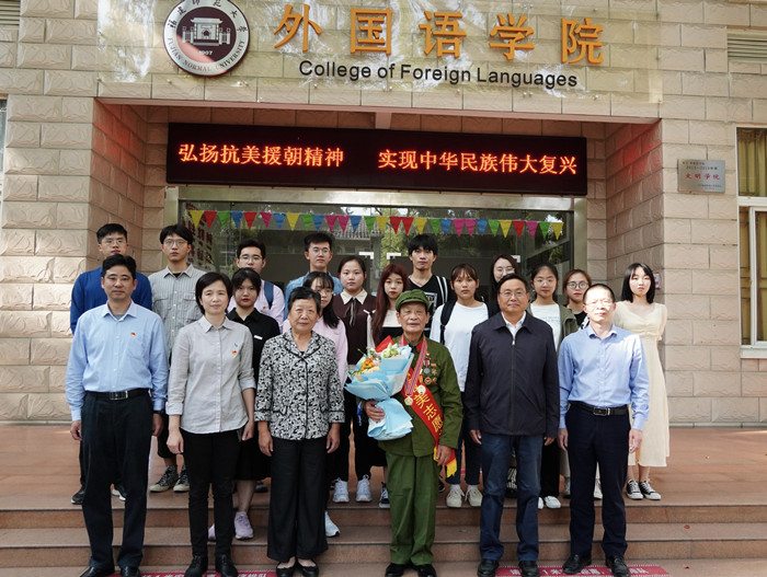 1028日,外国语学院邀请抗美援朝老英雄、全国最美志愿者黄以孟做客学院“博闻讲堂”,为师生上学习“四史”主题教育课。校关工委主任许歌平、副主任郭警修,院领导章琳、李启辉、林志达,教工党支部教师、辅导员,及2020级新生参加了活动。