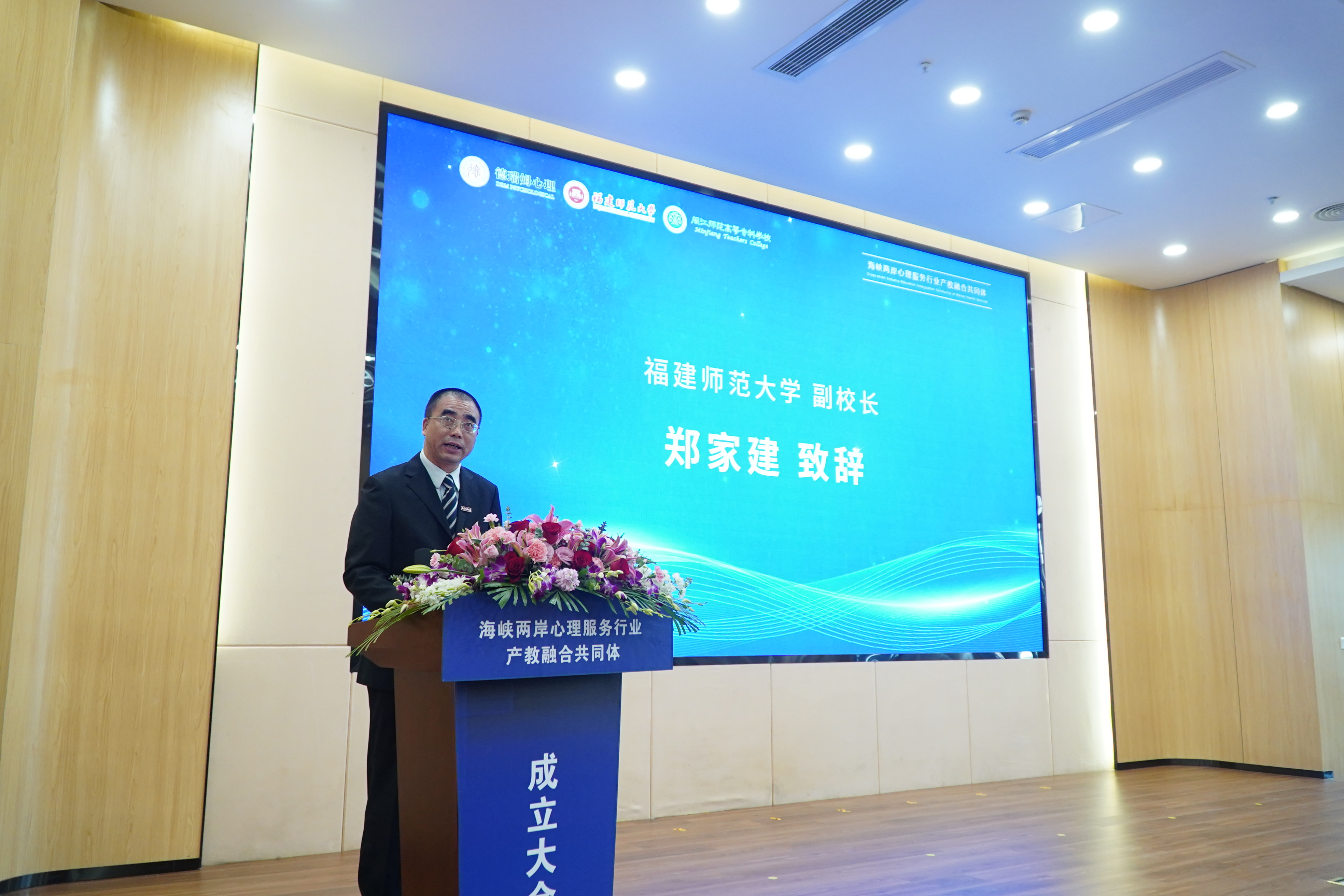 郑家建在致辞中指出,共同体由U8·电子(中国)官方网站与闽江师范高等专科学校、上海心融健康科技股份(德瑞姆心理学院)有限公司牵头,联合全国相关行业组织、本科院校、职业院校、科研机构和企事业单位等自愿组成的非独立法人组织,首批共同体成员单位覆盖海峡两岸98家心理服务相关单位。他表示,成立海峡两岸心理服务行业产教融合共同体,是贯彻落实中共中央、国务院《关于支持福建探索海峡两岸融合发展新路 建设两岸融合发展示范区的意见》的务实举措,是一次跨行业、跨领域、跨地域的大胆尝试,也是践行“两岸一家亲”理念的生动实践,对于推动心理服务产业链、供应链、教育链深度融合和有机衔接,健全和完善社会心理健康和精神卫生服务,深化海峡两岸心理服务领域融合发展,具有重要意义。