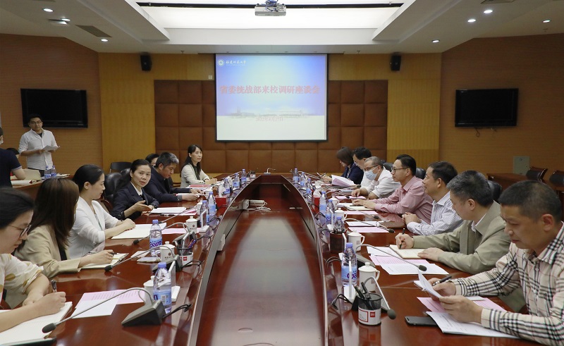 4月27日,省委统战部副部长王宁、正厅长级干部高其兴、研究室主任黄勤衡、宣传信息办主任俞锋、编辑部主任杨文法等一行来校调研。校党委书记潘玉腾会见了王宁一行,校党委副书记陈晓红主持调研座谈会,统战部、宣传部、社会历史学院有关负责人等参加座谈。
