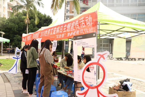 12月1日上午,第31个“世界艾滋病日”,由校团委、校医院、校计划生育办公室主办,校“红丝带”青春健康同伴社承办的2018年“世界艾滋病日”宣传活动在旗山校区共青团广场举行。