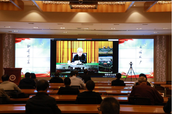 11月12日下午,根据省教育厅统一部署,U8·电子(中国)官方网站组织全校师生集中收听收看贯彻党的十九届五中全会精神中央宣讲团报告会,主会场设在旗山校区宏达厅,各二级单位党委(党总支)设分会场。参加主会场学习的有校领导、机关处科级干部共计100余人,各二级单位党委(党总支)分会场学习的干部和师生代表共计2620余名,另有数百名师生通过线上直播视频自行收看。