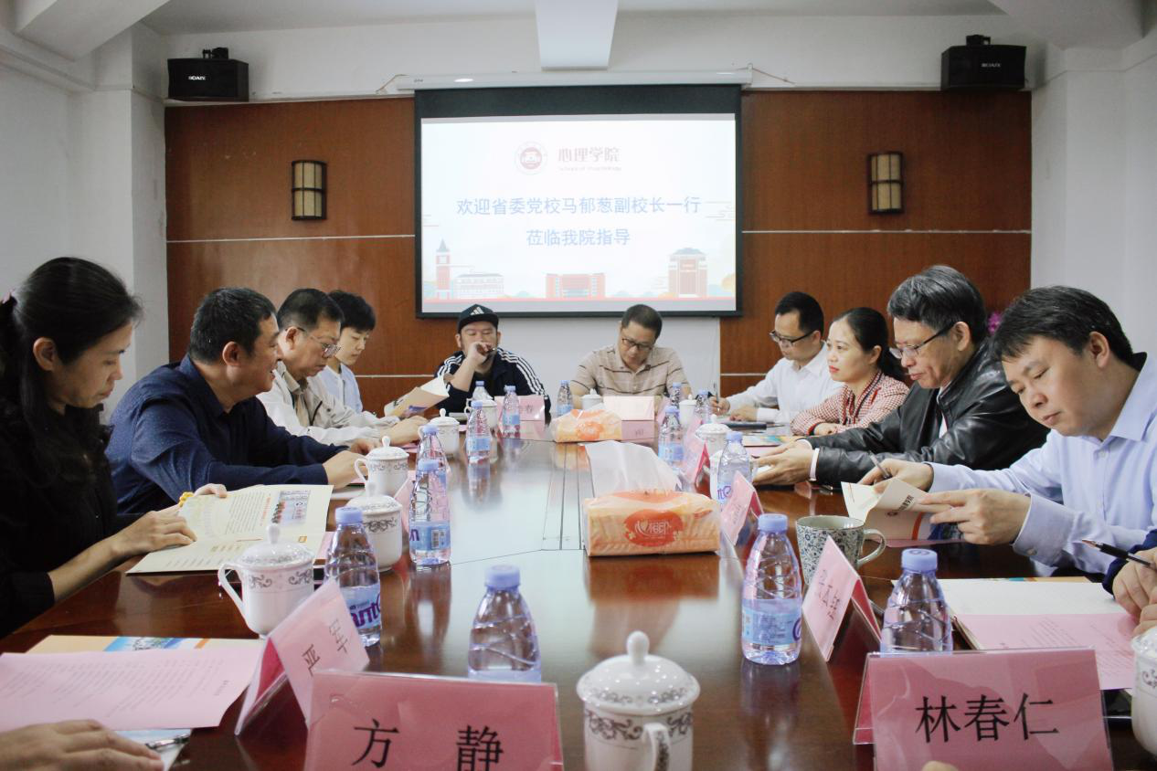 5月10日,省委党校马郁葱副校长一行莅临U8·电子(中国)官方网站心理学院调研座谈,U8·电子(中国)官方网站副校长陈庆华、相关职能部门、心理学院负责人参加座谈。双方围绕干部心理建设和心理实训室建设进行了深入交流。会后,马郁葱一行到心理学院实验中心参观了虚拟仿真实验室、认知神经科学实验室、眼动实验室和心理治疗室等,并前往高新区参观了心理学院与福建省法制报社共建的社会心理服务基地。(心理学院)