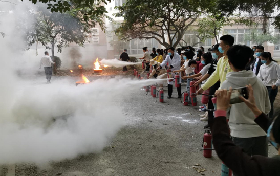 副院长陈松林在演练开始前强调实验室安全工作的重要性,要求学生强化实验室安全意识、遵守实验室规章制度;校保卫处消防科科长曾彦扬讲解了消防安全知识、火灾初期扑救方法和注意事项,演示了消防器材的正确使用方法以及不同灭火器适用的场景。