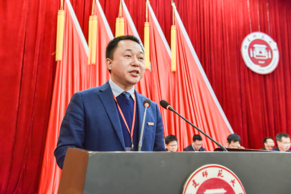 校党委副书记潘玉腾致开幕词,他充分肯定了校八届八次教代会暨十一届八次工代会以来学校取得的成绩,希望全体代表站在学校发展的全局高度,充分发扬主人翁精神,畅所欲言、集思广益,认真履行职责、积极建言献策,切实把思想和行动统一到大会安排的各项任务上来,为推动学校改革发展稳定贡献更多的智慧和力量。